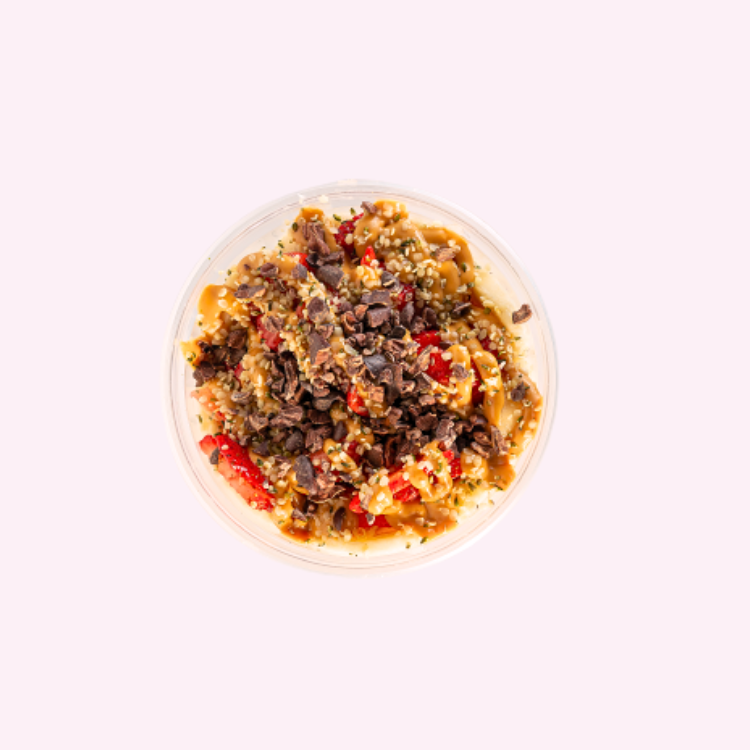 TOPPINGS: Granola, Banana, Strawberry, Hemp Hearts, Peanut Butter, Cacao Nibs